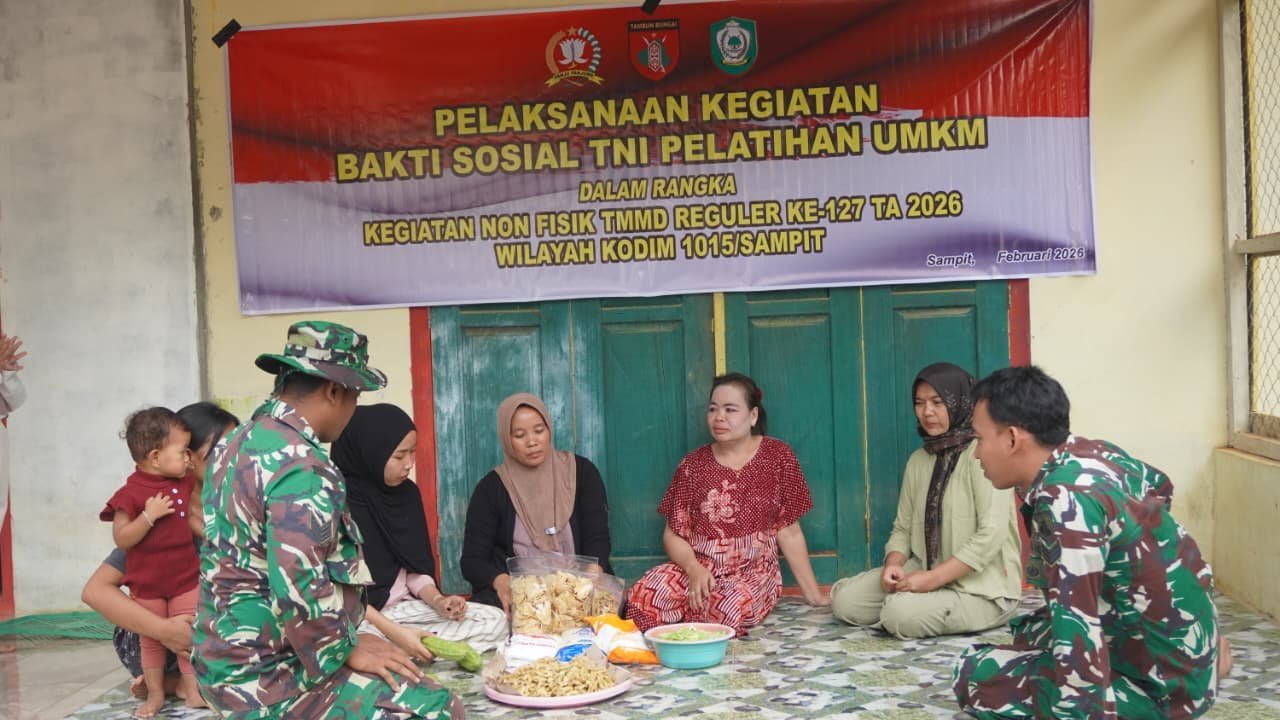 Kotawaringin Timur – Komitmen TMMD ke-127 Kodim 1015/Sampit dalam membangun desa secara menyeluruh kembali terlihat melalui dukungan terhadap pelaku usaha kripik tempe dan kripik pare di Desa Bukit Indah, Kecamatan Telaga Antang, Kamis (26/02/2026).