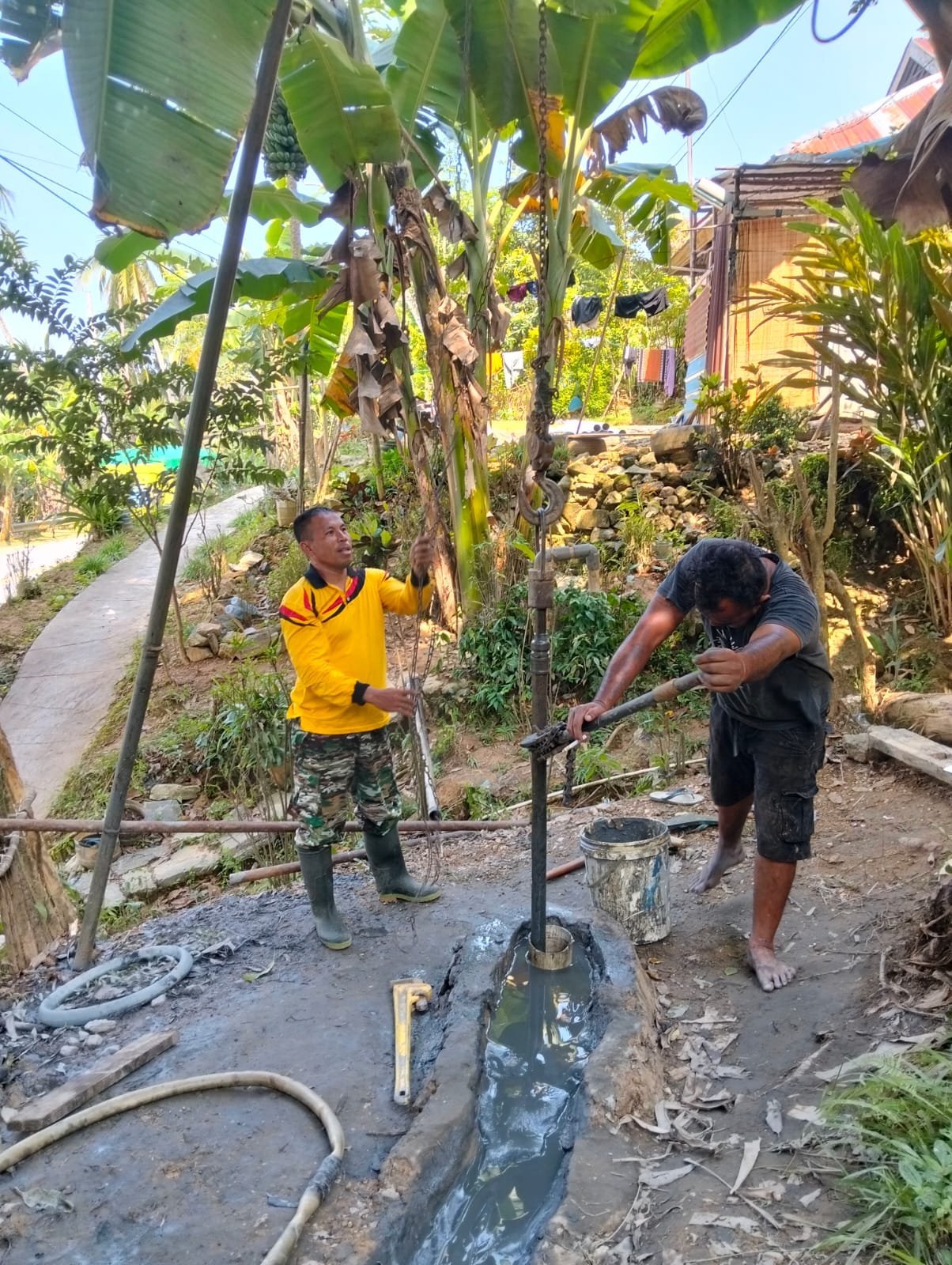 Proses pengeboran dilakukan secara gotong royong dengan melibatkan masyarakat setempat. Warga turut membantu proses persiapan hingga pengangkutan perlengkapan guna mempercepat pelaksanaan kegiatan.