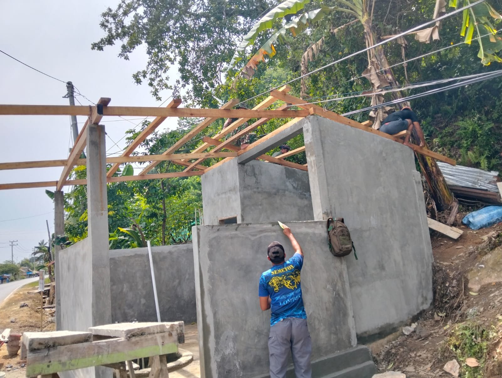 Dengan terpasangnya kerangka atap, pembangunan fasilitas sanitasi tersebut telah menunjukkan progres signifikan.