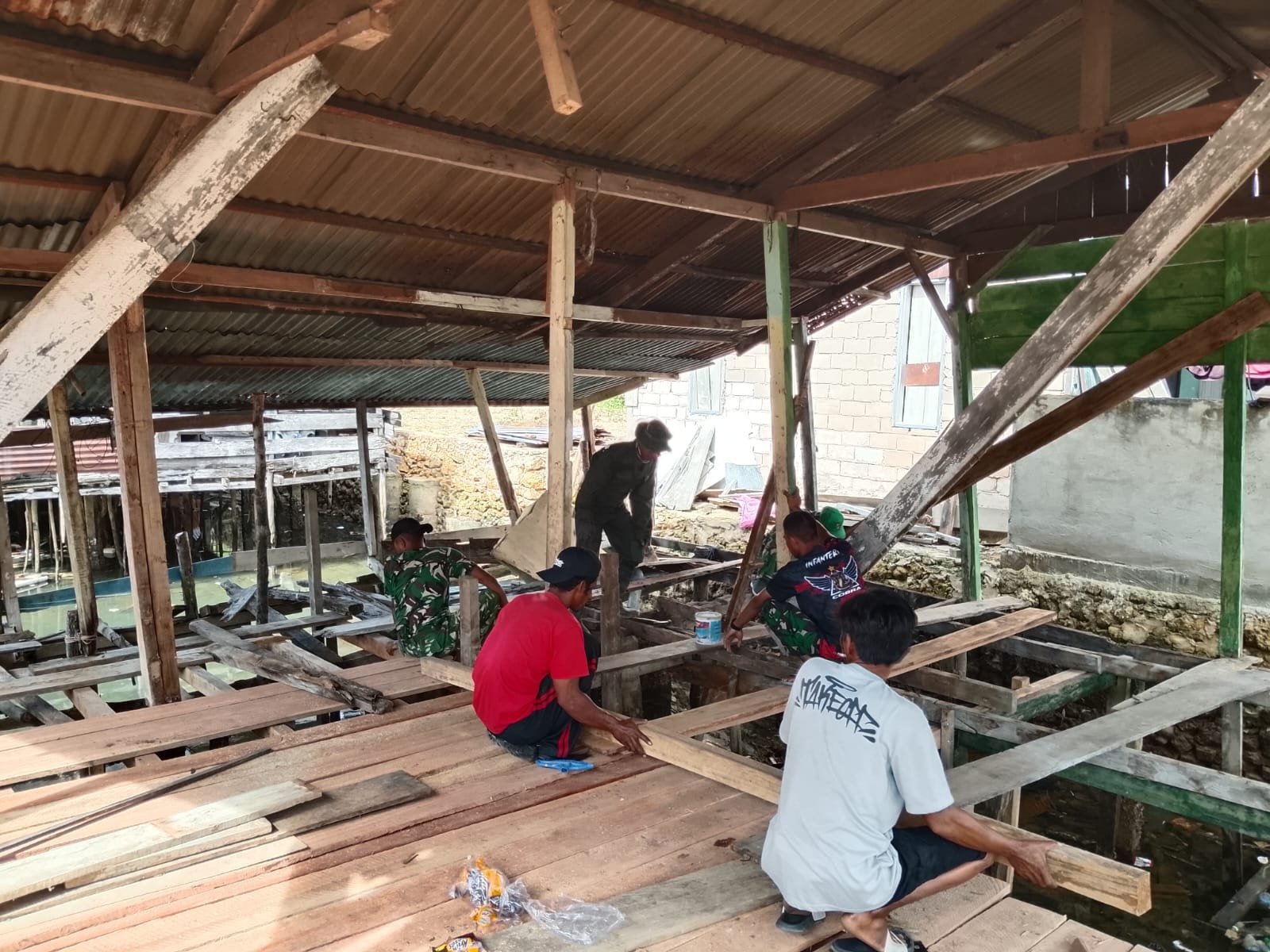 Tak hanya bekerja secara teknis, personel Satgas juga membangun kedekatan dengan masyarakat melalui semangat gotong royong di setiap tahapan renovasi.