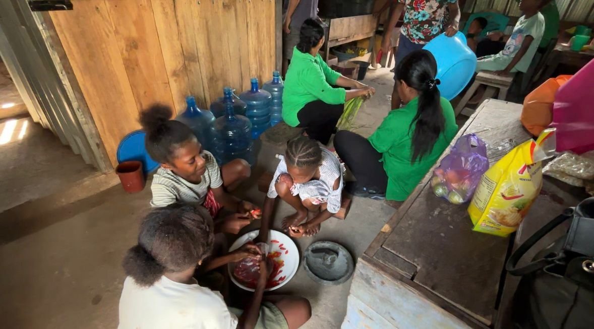 Yang menarik, anak-anak Kampung Sisir yang baru pulang sekolah terlihat sigap membantu di dapur. Mereka dengan ceria ikut menata bahan makanan dan membantu pekerjaan ringan, menciptakan suasana kebersamaan yang harmonis.