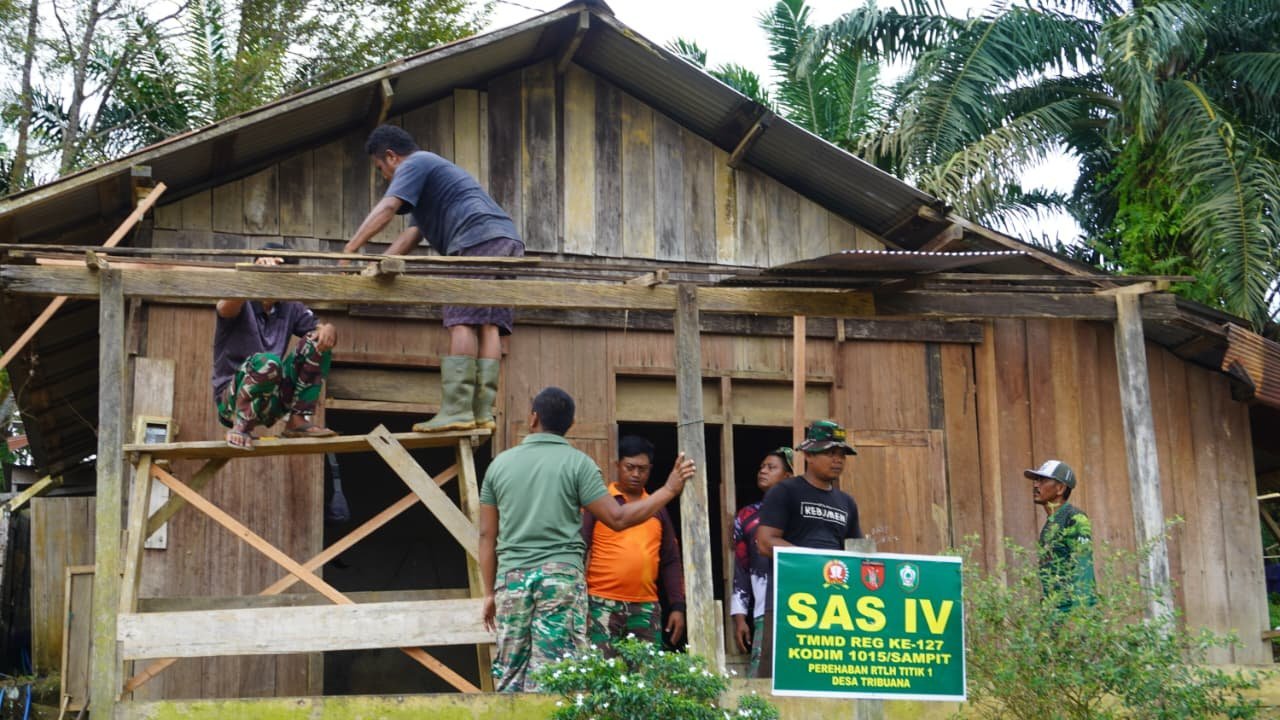 Kotawaringin Timur – Suasana haru menyelimuti Desa Tri Buana saat Satgas TMMD ke-127 memulai renovasi rumah milik Bapak Sumardi, Sabtu (21/02/2026). Program RTLH yang digelar Kodim 1015/Sampit menjadi harapan baru bagi keluarga tersebut.