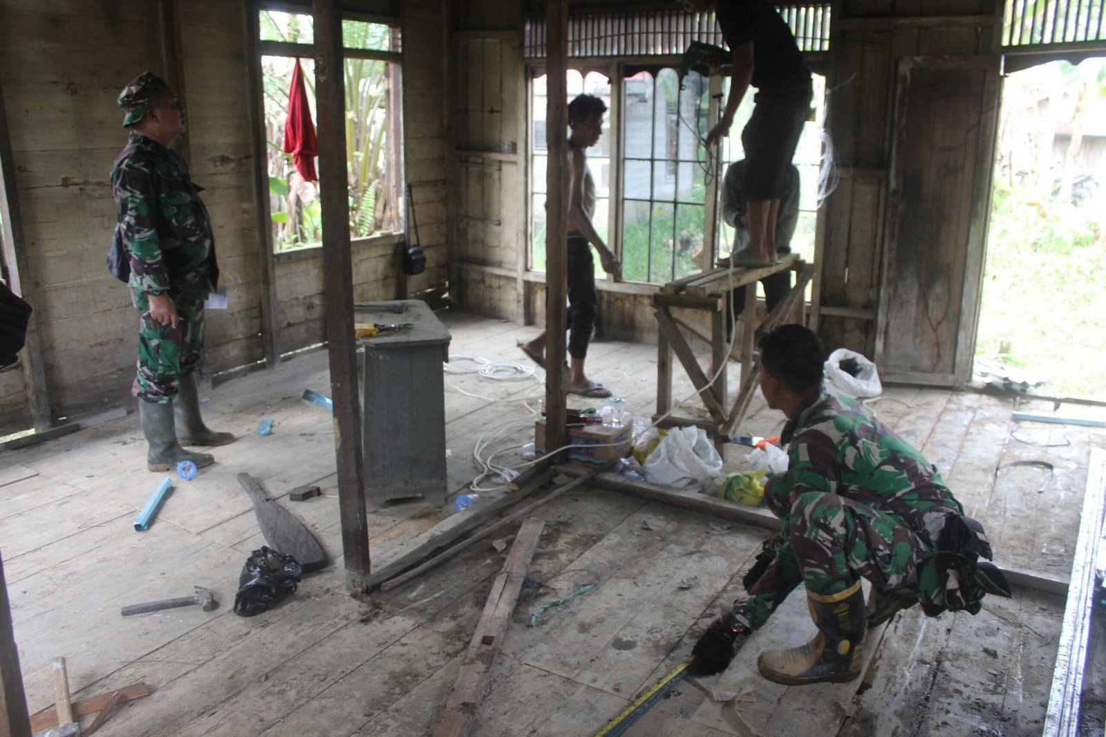 Satgas TMMD Dan Warga Tarus Gotong Royong Bangun RTLH Bu Rio