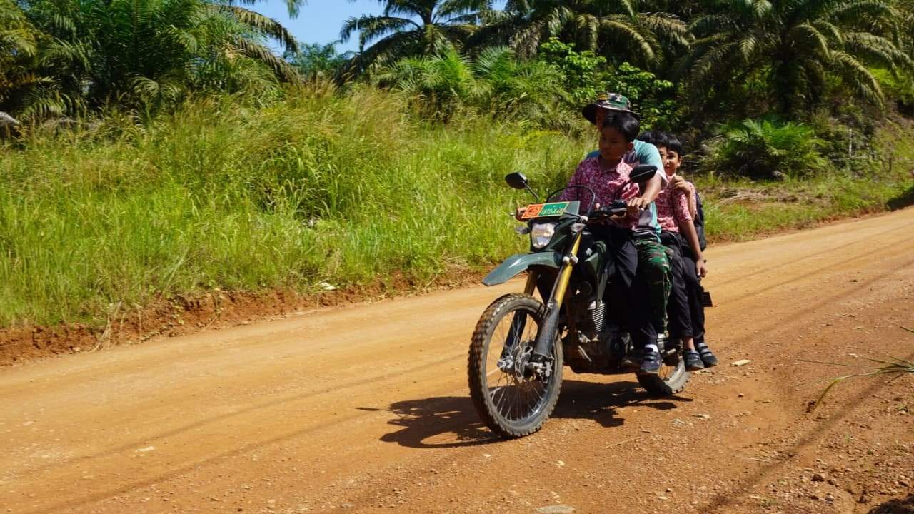 Kotawaringin Timur – Aksi humanis kembali ditunjukkan Satgas TMMD Reguler ke-127 Kodim 1015/Sampit dengan menjemput anak-anak sekolah di Desa Tri Buana, Kecamatan Telaga Antang, Kamis (26/02/2026).