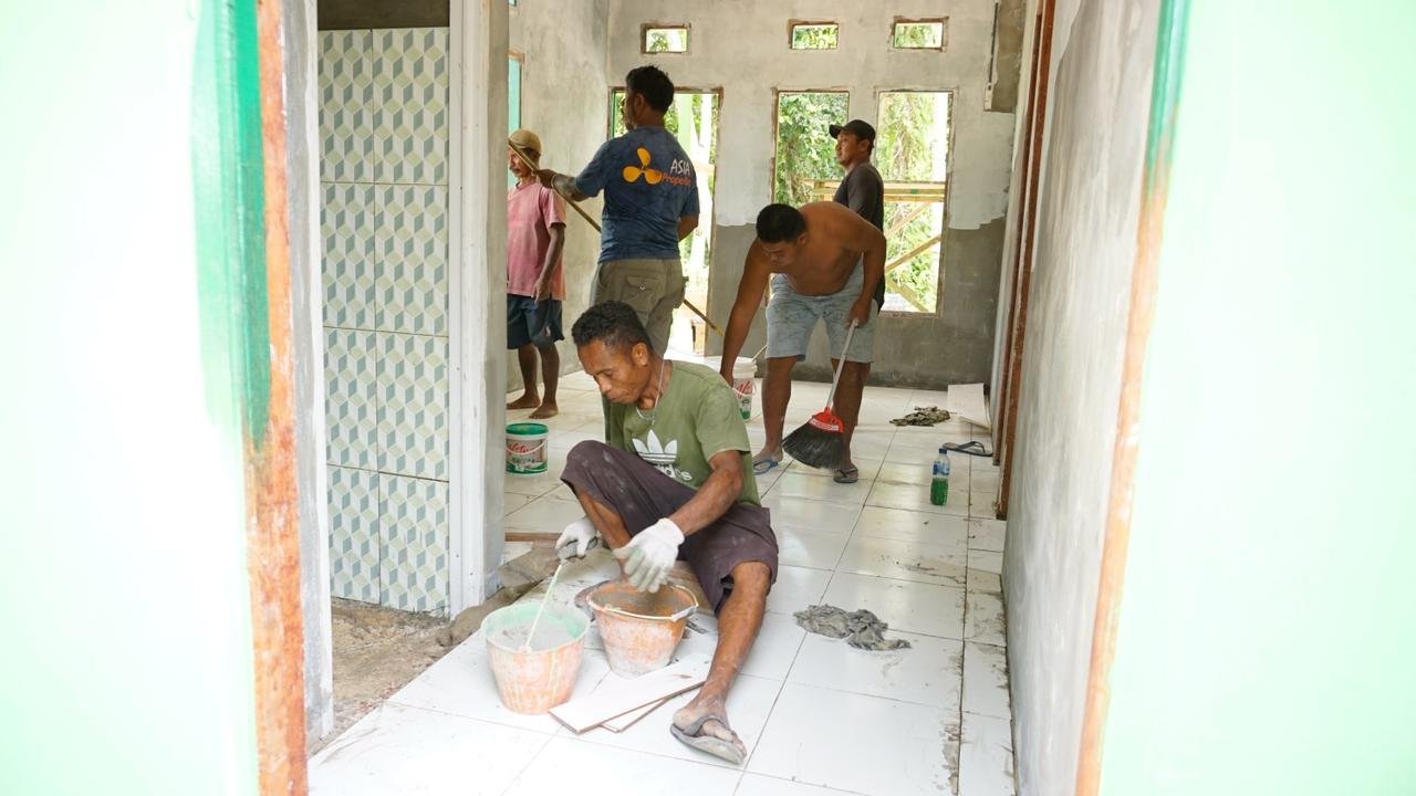 Pemasangan keramik ini merupakan bagian dari tahap akhir pembangunan yang menandakan pekerjaan semakin mendekati penyelesaian. Kerja keras dan koordinasi yang baik antaranggota menjadi kunci tercapainya progres tersebut.