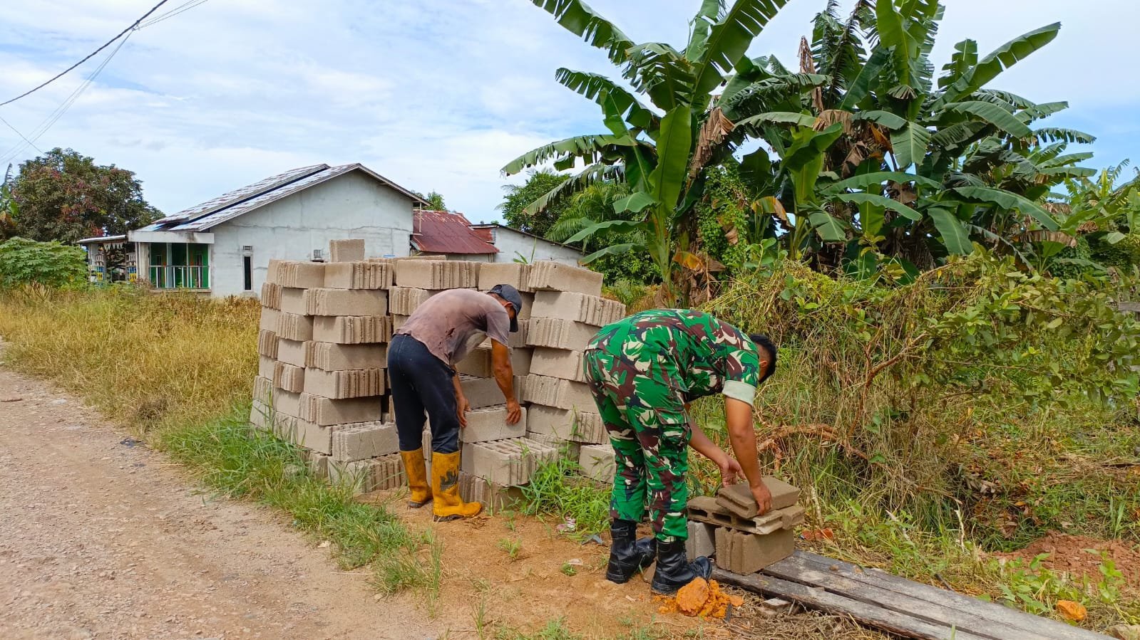 Mempawah – Setelah berminggu-minggu berjibaku dalam pembangunan Rumah Tidak Layak Huni (RTLH), prajurit Satgas TMMD Ke-124 bersama warga kembali menunjukkan semangat kebersamaan. Hari ini, mereka tampak kompak mengemaskan sisa batako yang tidak terpakai, sebagai bagian dari penataan ulang lokasi pembangunan yang telah mencapai tahap akhir.