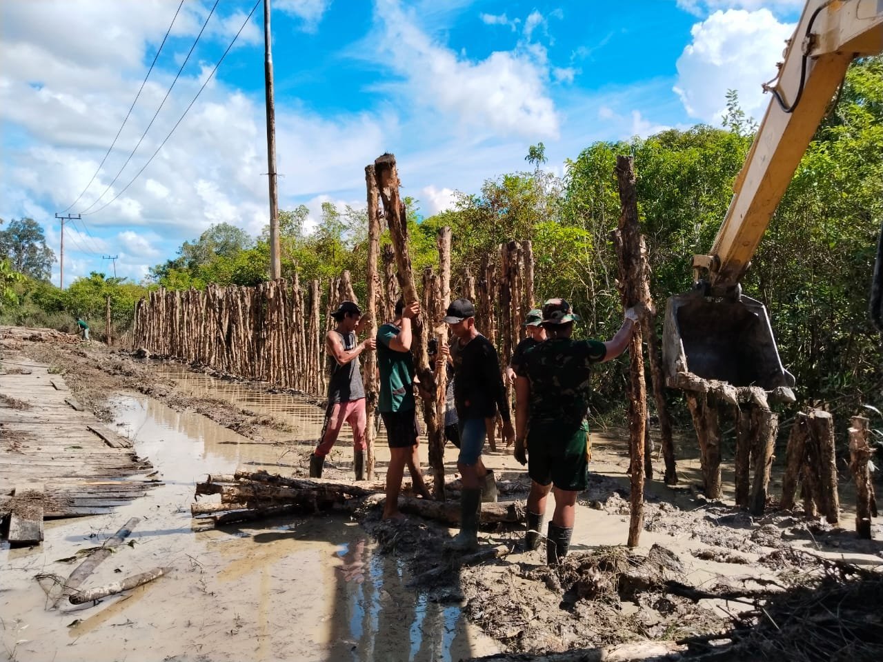 Barito Selatan – Untuk percepatan pengerjaan sasaran fisik TMMD Reguler ke-124 Kodim 1012/Buntok telah memasuki tahap pemasangan dinding luar rumah tidak layak huni (RTLH). Satgas TMMD bersama warga bahu-membahu bergotong royong menyelesaikan pemasangan dinding, Bertempat di Desa Talio, Kecamatan Karau Kuala, Kabupaten Barito Selatan, Pada hari Sabtu (24/05/2025)