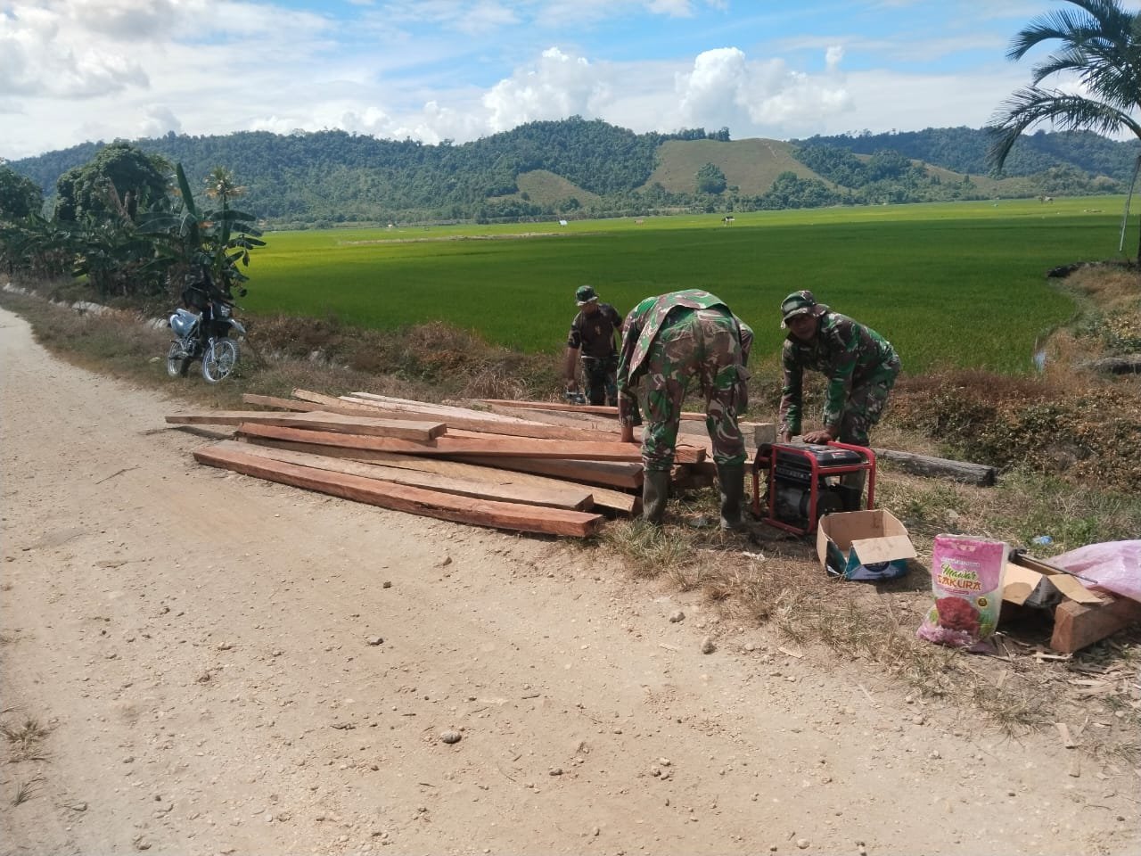 Seorang personel Satgas menyampaikan, “Kami berkomitmen untuk memberikan yang terbaik dalam pengecoran ini agar jalan benar-benar bisa menunjang kebutuhan masyarakat.”