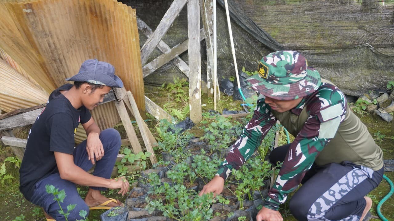 Kotawaringin Timur, 23 Februari 2026 – Di sela waktu istirahat pelaksanaan TMMD Reguler ke-127, anggota Satgas dari Kodim 1015/Sampit melaksanakan komunikasi sosial (Komsos) dengan petani sayuran di Desa Tri Buana, Kecamatan Telaga Antang, Senin (23/02/2026).