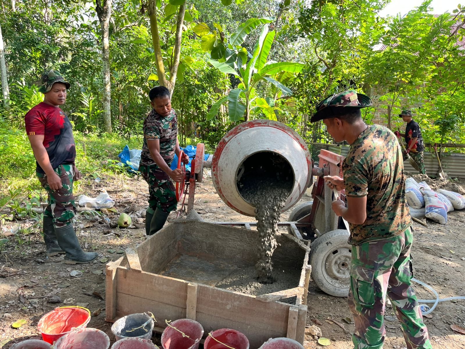 Personel TNI bersama masyarakat setempat bahu-membahu memastikan setiap tahapan berjalan sesuai rencana. Kekompakan di lapangan menjadi kunci agar target penyelesaian dapat tercapai tepat waktu.