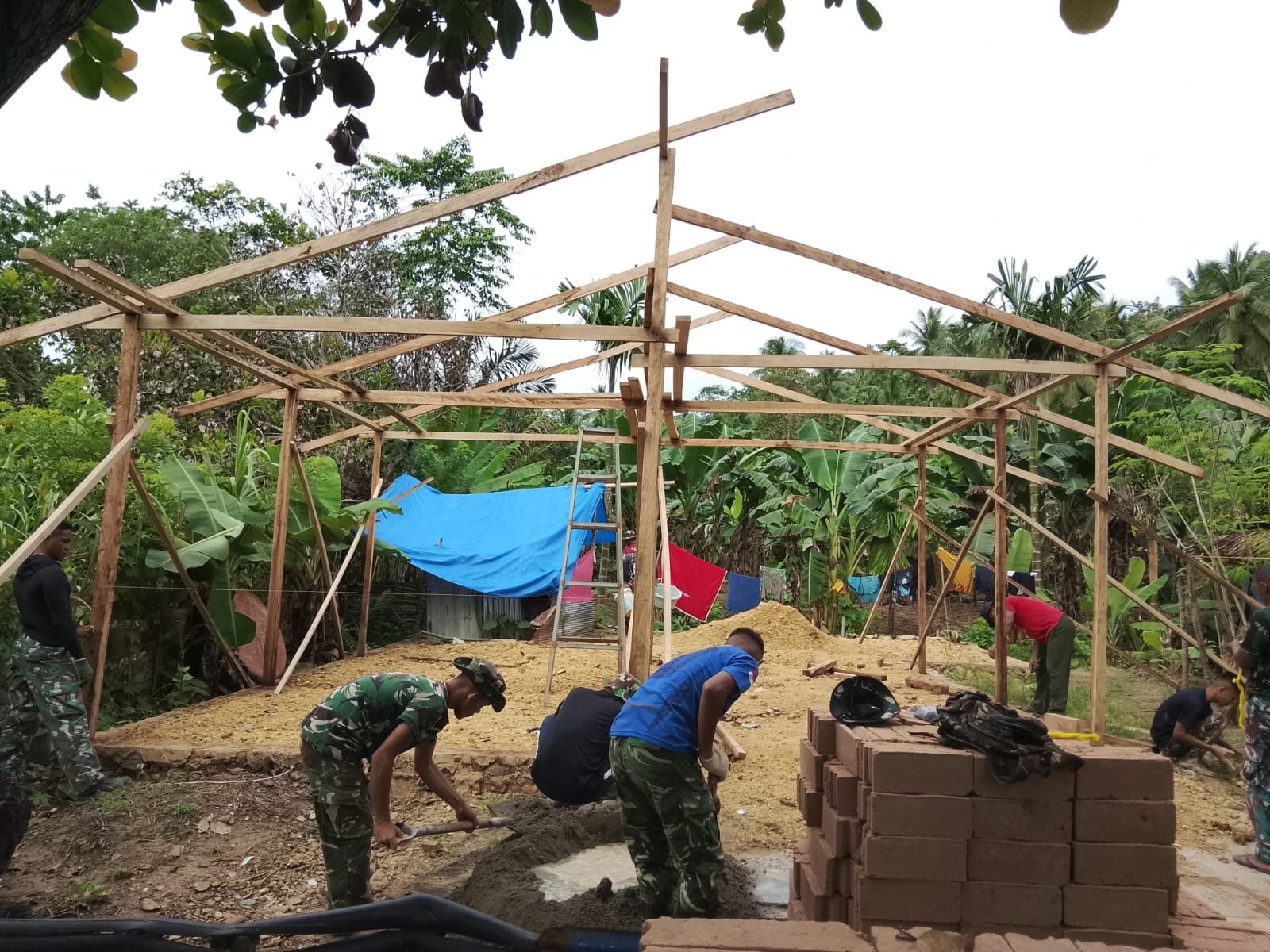 Satgas TMMD memastikan setiap detail rangka dibangun sesuai standar kelayakan agar kokoh dan tahan lama.