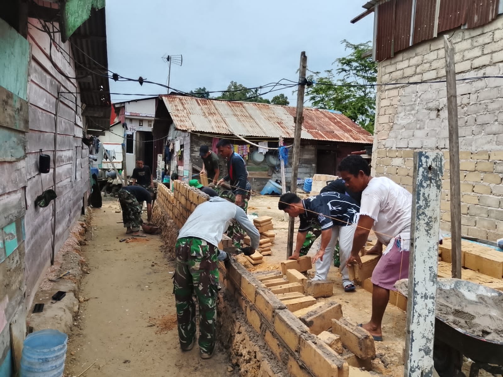 Pada tahap terbaru, personel Satgas bersama masyarakat melaksanakan pemasangan dinding batako yang menjadi struktur utama bangunan. Pengerjaan dilakukan dengan teliti agar rumah yang dibangun memiliki daya tahan maksimal.