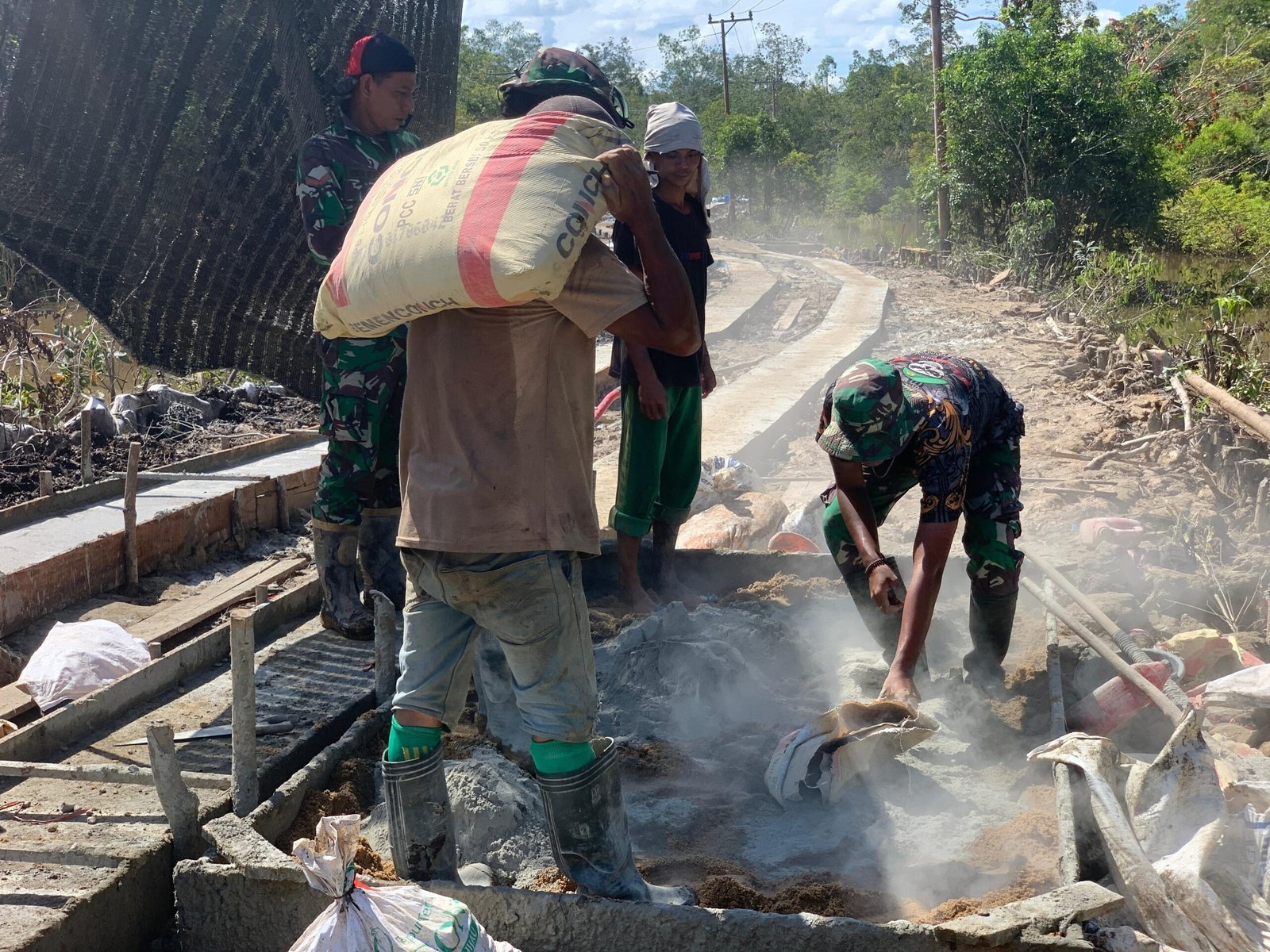 Kegiatan ini dilakukan dengan penuh kehati-hatian, mengingat kualitas campuran sangat menentukan kekuatan struktur jalan. Satgas memastikan seluruh bahan dalam kondisi baik, bebas dari kotoran dan sesuai takaran agar hasil pengecoran maksimal.
