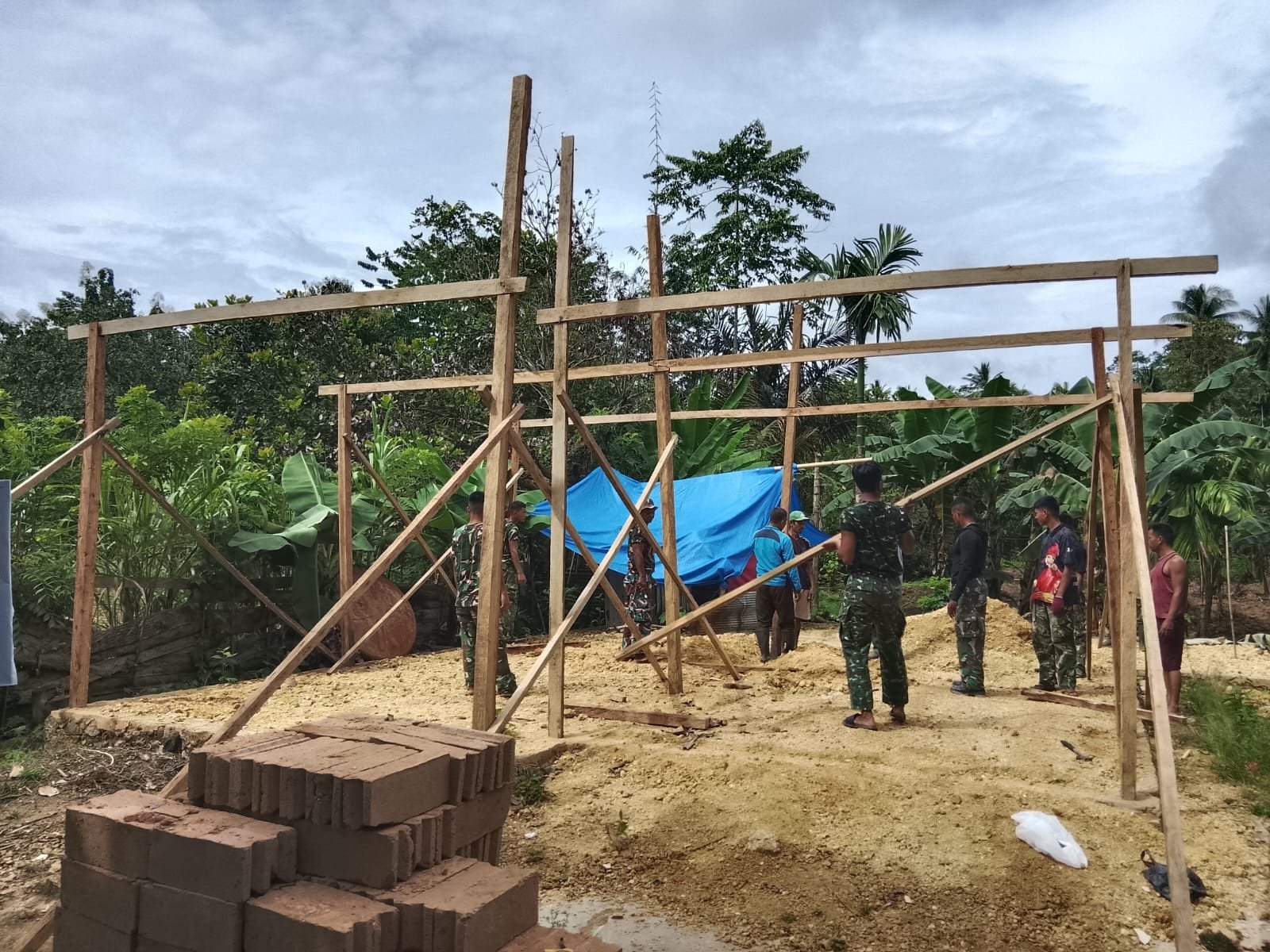 Walau cuaca cukup terik, semangat gotong royong tetap terjaga. Kekompakan antara prajurit dan warga menjadi kunci kelancaran pengerjaan di lapangan.