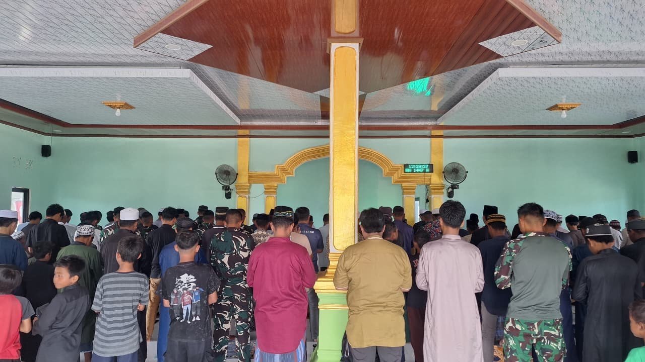 Di tengah padatnya aktivitas pembangunan fisik program TMMD, para prajurit menyempatkan diri untuk beribadah bersama masyarakat setempat. Suasana khidmat dan penuh kekhusyukan terlihat saat anggota Satgas TMMD berdiri sejajar dengan warga dalam satu saf, mencerminkan kebersamaan tanpa sekat.