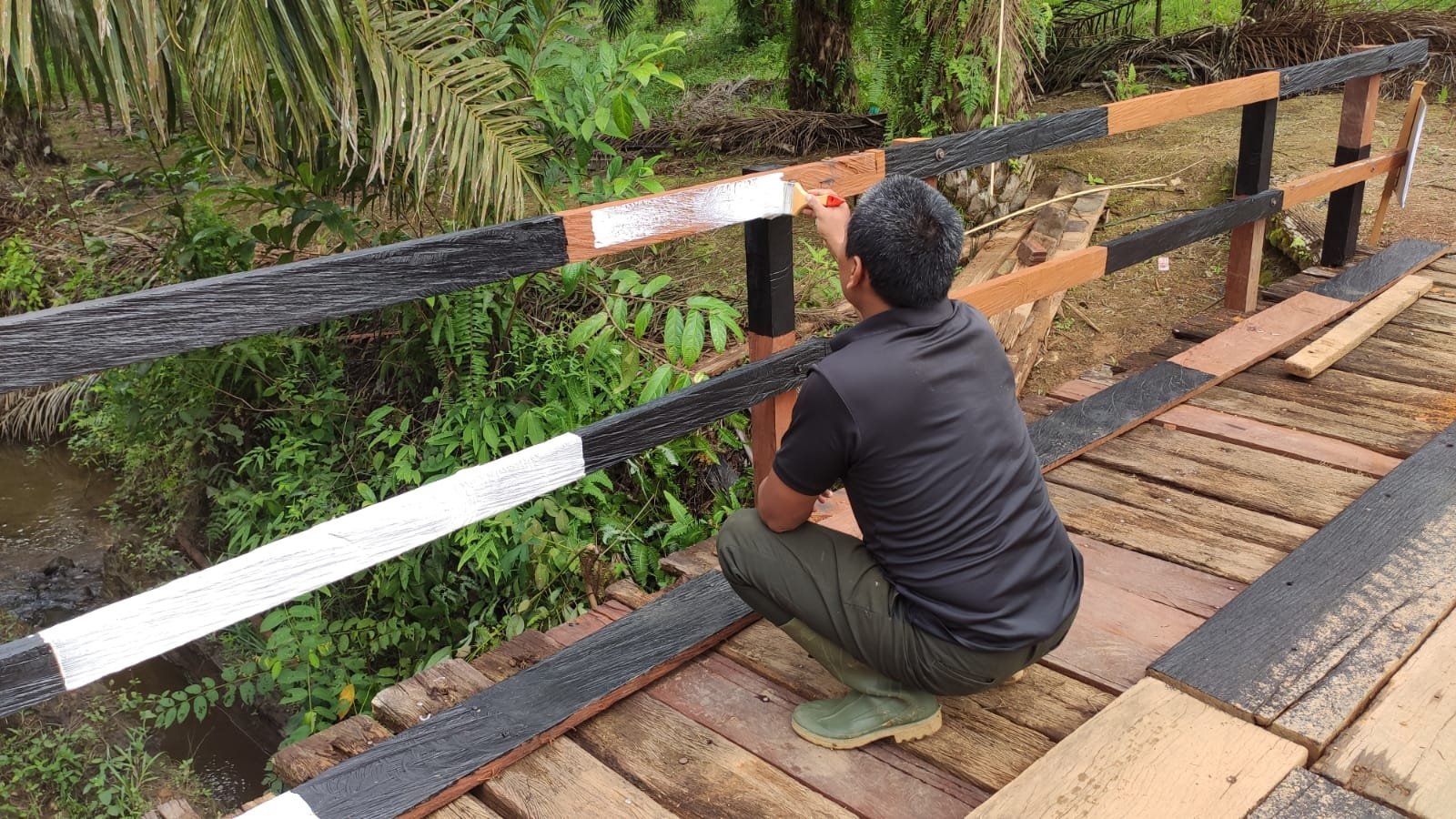 Pengecatan tersebut menjadi bagian penting dalam penyempurnaan konstruksi sebelum jembatan difungsikan sepenuhnya oleh masyarakat. Kegiatan ini dilakukan secara gotong royong oleh personel Satgas TMMD bersama warga sekitar.