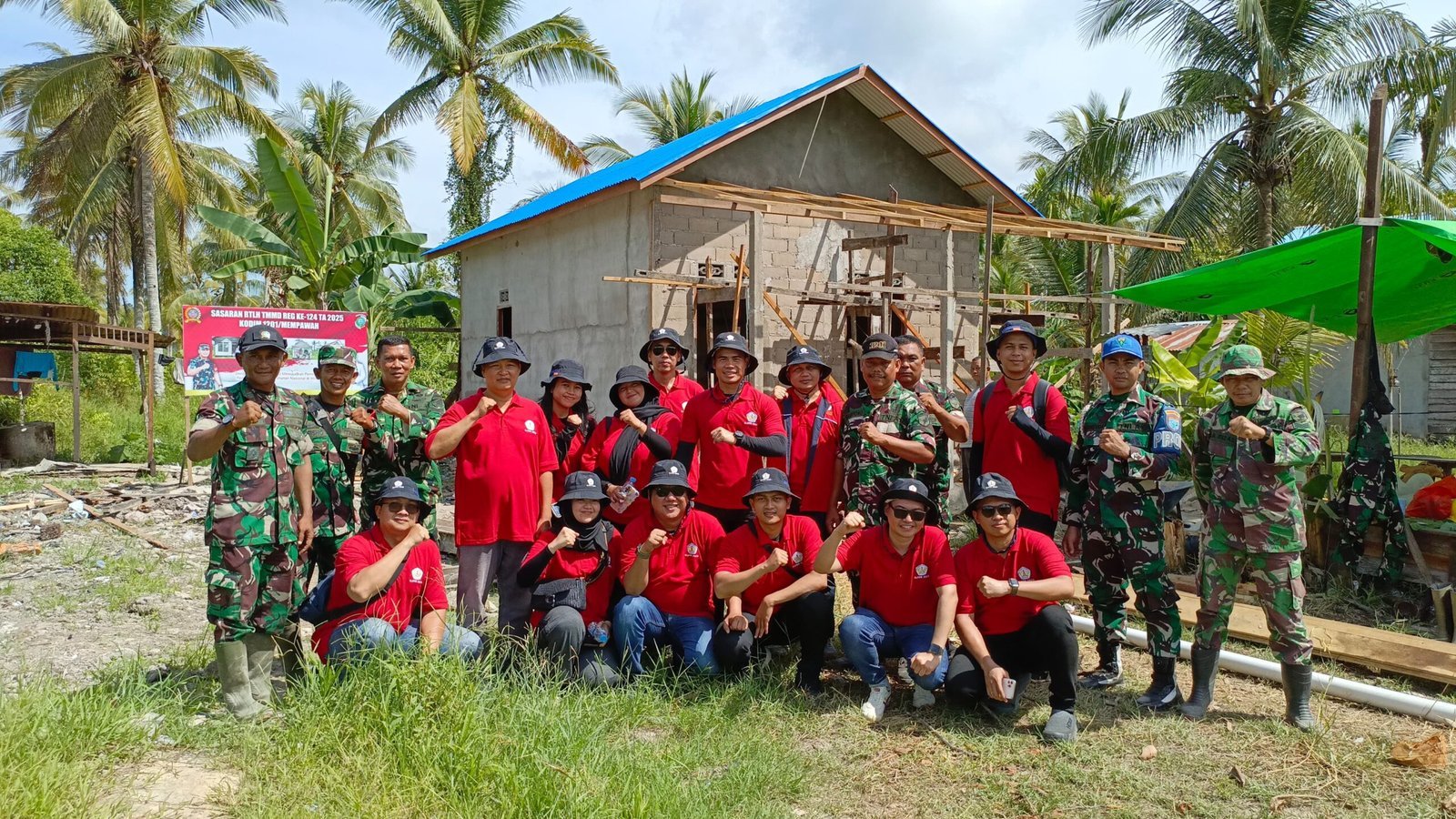 Satgas bekerja sama dengan warga desa untuk memindahkan material dari tempat penampungan ke lokasi sasaran. Meski medan cukup menantang, kekompakan antara TNI dan masyarakat membuat proses berjalan lancar dan cepat.