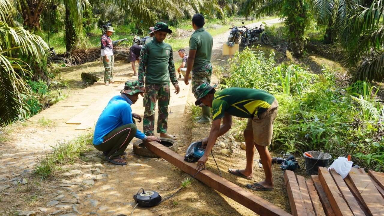 Di lokasi, anggota Satgas TMMD terlihat mulai menyiapkan tiang-tiang kayu yang akan menjadi pondasi jembatan. Tiang-tiang tersebut dipersiapkan dengan cermat untuk memastikan struktur jembatan kuat dan aman digunakan warga dalam mengangkut hasil perkebunan.