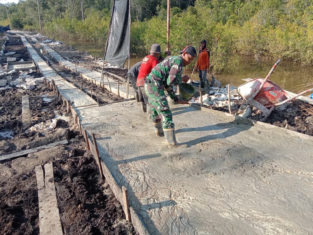 Kerja keras dan keberanian Satgas TMMD menjadi bukti nyata dedikasi mereka dalam mewujudkan pembangunan infrastruktur yang berkualitas. Pemasangan kayu penyangga ini adalah salah satu tahap krusial yang harus dilalui demi kelancaran dan keberhasilan program TMMD di Desa Talio, Kecamatan Karau Kuala.