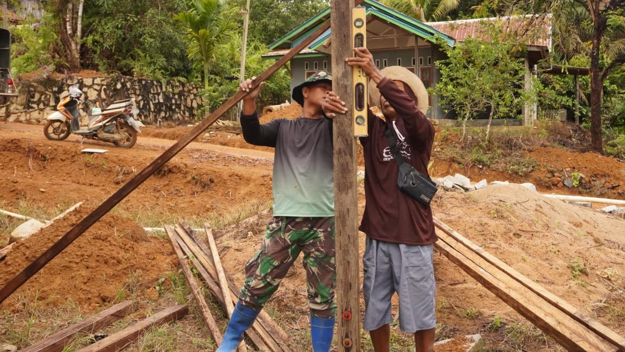 Bantuan tersebut diberikan saat personel Satgas TMMD tengah melaksanakan pembangunan siring jalan di wilayah desa tersebut. Salah satu anggota Satgas, Pratu Dedi, dengan sigap menghentikan pekerjaannya untuk membantu warga yang sedang kesulitan mendirikan tiang rumah.