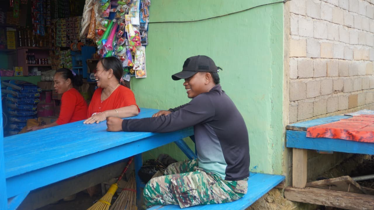 Pertemuan yang berlangsung di warung warga tersebut dimanfaatkan sebagai sarana bertukar informasi dan mempererat hubungan emosional antara prajurit dan masyarakat. Dalam suasana penuh kekeluargaan, berbagai topik pembicaraan disampaikan secara ringan namun penuh makna.