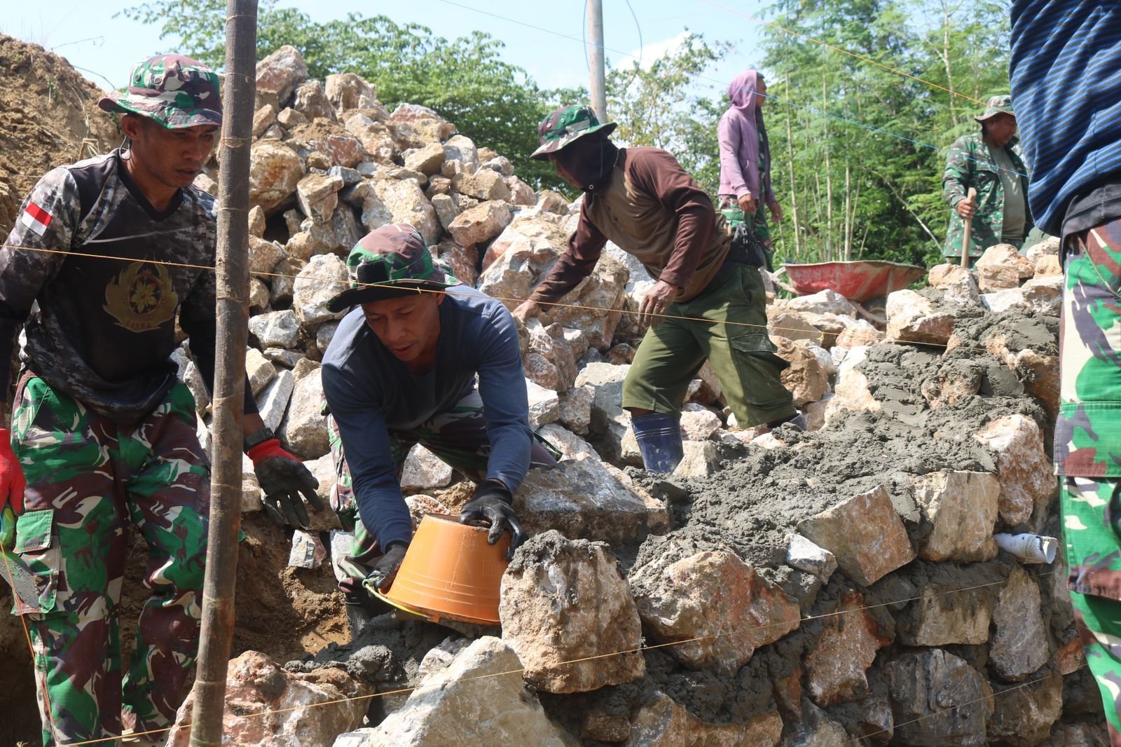 Sejak pagi hari, personel Satgas bersama masyarakat bahu-membahu melaksanakan berbagai tahapan pekerjaan konstruksi, mulai dari penataan material hingga proses penguatan struktur jembatan.