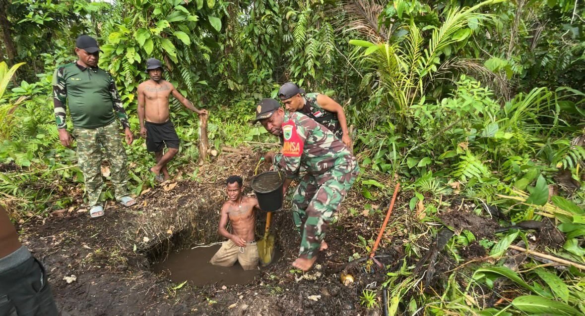 Semangat Satgas dan Warga Warnai Penggalian Sumur Bor TMMD 127 di Kampung Sisir 2
