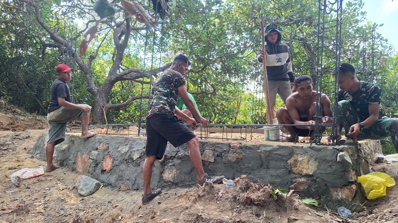 Kendari – Jemari tangkas anggota Satgas TMMD 127 Kodim 1417/Kendari menari lincah di antara jalinan kawat baja saat merakit besi tiang cor, Rabu (18/2). Ketelitian dan ketepatan mereka menjadi simbol kokohnya komitmen TNI dalam mendukung pembangunan infrastruktur di Kendari.