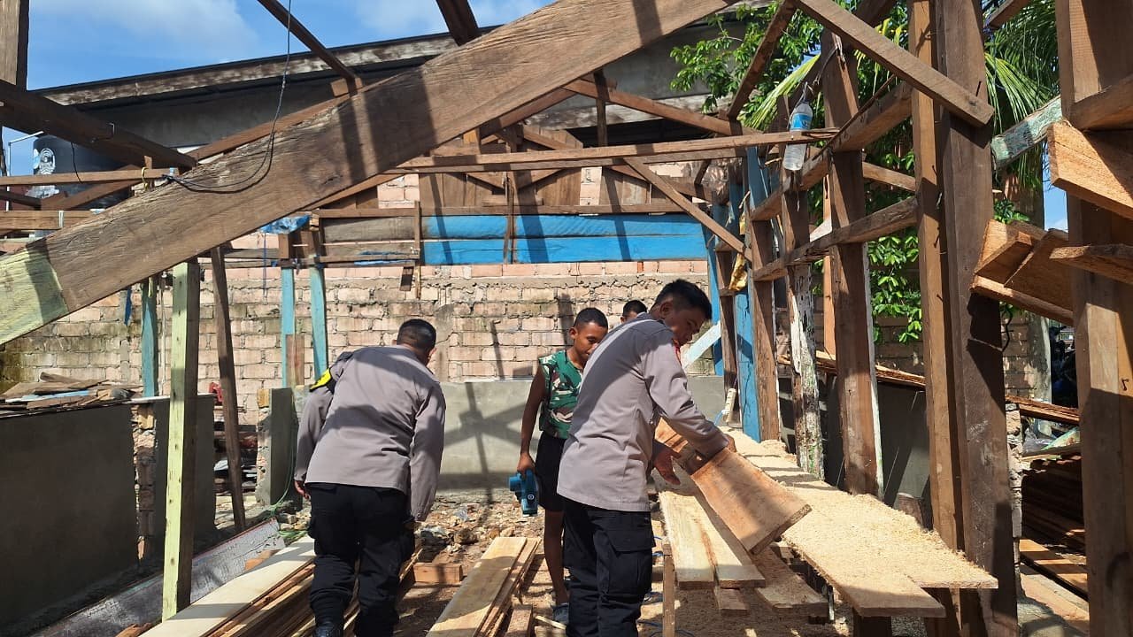 Dengan penuh semangat, aparat berseragam loreng dan cokelat itu terjun langsung mengolah kayu serta menyusun rangka bangunan Rumah Tidak Layak Huni (RTLH). Tanpa sekat, keduanya bekerja dalam satu irama demi mempercepat proses pembangunan.