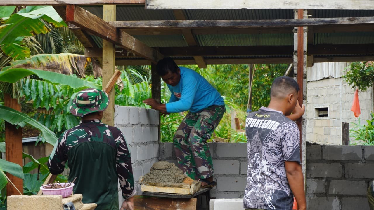 Pada hari tersebut, personel Satgas bersama warga fokus pada pemasangan batako untuk dinding bangunan. Dengan kerja sama yang solid, proses pembangunan berjalan lancar dan sesuai target yang telah direncanakan.