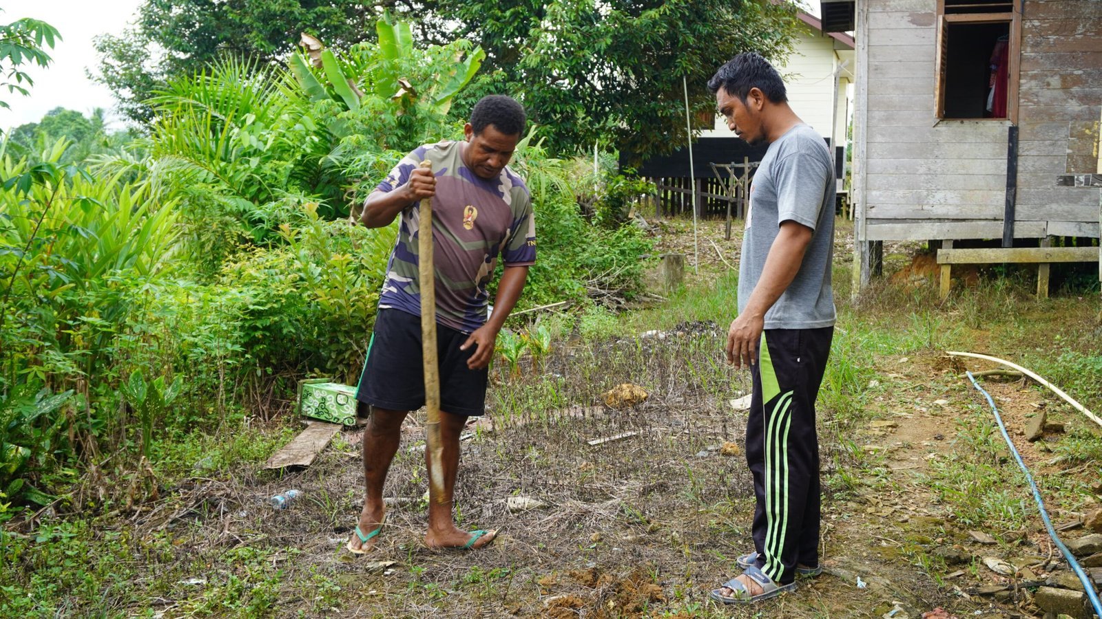 Kegiatan penggalian tanah menjadi tahap awal sebelum pemasangan instalasi septic tank. Proses ini dilakukan secara gotong royong antara anggota Satgas dan masyarakat sekitar.