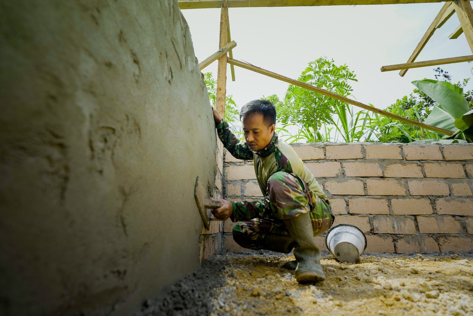 Dengan semangat gotong royong antara personel TNI dan warga, rumah-rumah kayu yang sebelumnya rapuh kini berubah menjadi hunian permanen yang lebih kokoh dan nyaman.