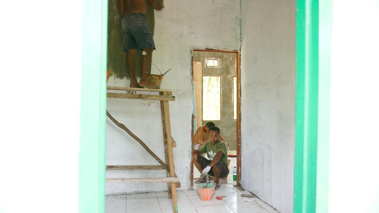 KAIMANA – Pada 21/02/2026, Satgas TMMD ke-127 dari Kodim 1804/Kaimana melaksanakan proses pemasangan keramik sebagai bagian dari tahap finishing pembangunan. Hingga saat ini, progres pekerjaan telah mencapai 60 persen.
