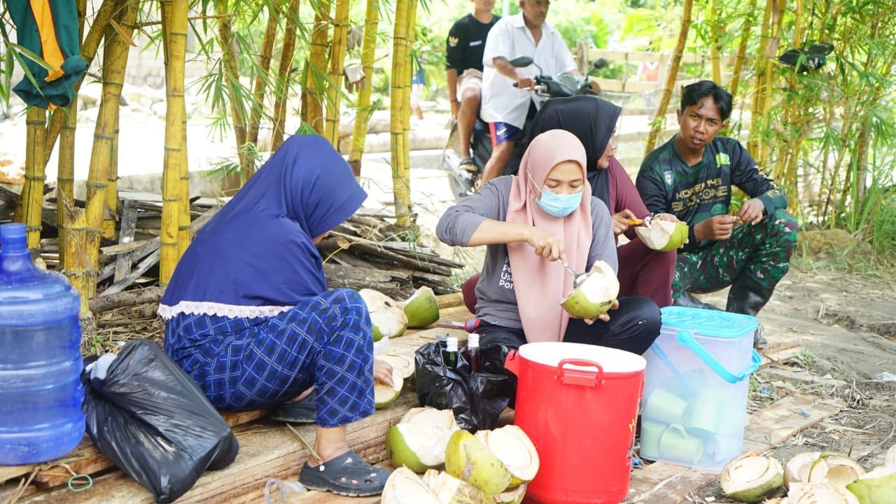 Kendari – Dukungan masyarakat terhadap program TMMD ke-127 kembali terlihat nyata di Kelurahan Sambuli pada Senin (16/2). Warga, khususnya para ibu rumah tangga, menunjukkan kepedulian mereka dengan menyajikan es kelapa muda bagi personel Satgas dari Kodim 1417/Kendari yang sedang melaksanakan pekerjaan fisik.