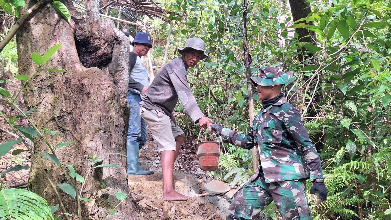 Medan yang cukup menanjak dan rimbun dengan pepohonan tidak menyurutkan antusiasme warga dan prajurit dalam mempercepat penyediaan fasilitas vital bagi kebutuhan air bersih di wilayah tersebut.